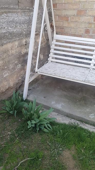 - Конструкция: прочная стальная рама с А-образными опорами и поперечной перекладиной; сиденье подвешено на металлических кронштейнах.