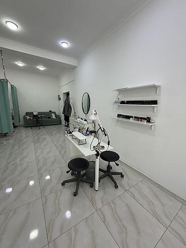 - Зоны: маникюр/педикюр (столы с лампами и вытяжками, полки с палитрой лаков и материалов), несколько кушеток для бровей/ресниц/косметологии/депиляции, зона для визажа и укладок с большим зеркалом, мягкая зона ожидания.