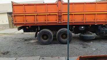 Самосвальный кузов (буртованный бортовой) оранжевого цвета для трехосного грузовика.