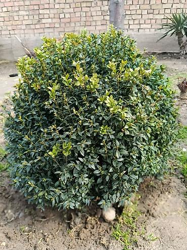 - Вечнозелёный декоративный кустарник с мелкими тёмно‑зелёными глянцевыми листьями.