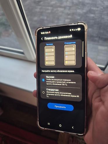 - Android с оболочкой One UI; раздел «Плавность движений» показывает выбор 120 Гц или 60 Гц