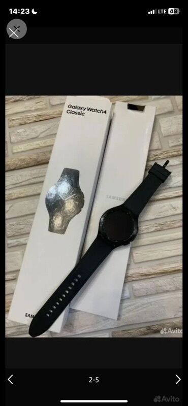 Модель, указанная на упаковке: Galaxy Watch4 Classic (Samsung). Цвет: черный. Диагональ экрана — серия Classic (размер на фото).