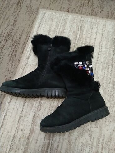 Зимние cапоги для девочки, из натуральной замши, в отличном состоянии, носили очень мало, очень тёплые, фирмы Котофей, 35 размер. Покупали очень дорого, отдам за 2000сом.