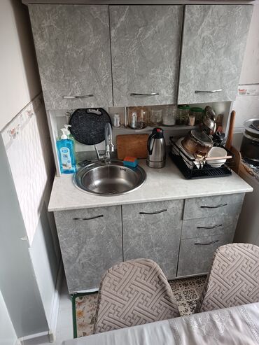 СРОЧНАЯ ПРОДАЖА Продаю кухонный гарнитур, (холодильник тоже продается отдельно за 7.000 сом) Встроенная плита газовая Сушилка для посуды, бутылочница Выдвижные ящики Барная стойка с полками Звони...