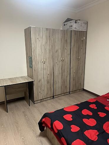 - Мебель: трехстворчатый платяной шкаф с ручками, прикроватные тумбы/основания в одном стиле под дуб, письменный стол.