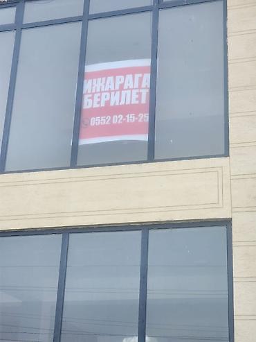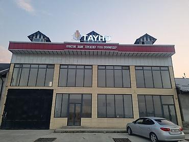 Вывеска на здании: «TAYNU»; На окне размещено объявление «Ижарага берилет».