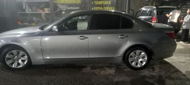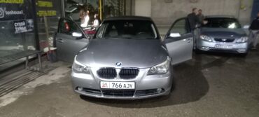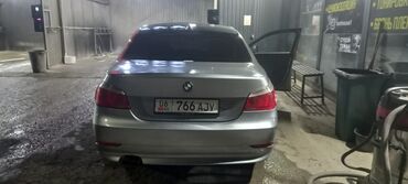 BMW 5 Series (E60), серый седан бизнес‑класса. Кузов с фирменной решёткой BMW, линзованные передние фары, легкосплавные диски, тонированные стёкла. Дорожный просвет и пропорции классической «пятёрки».