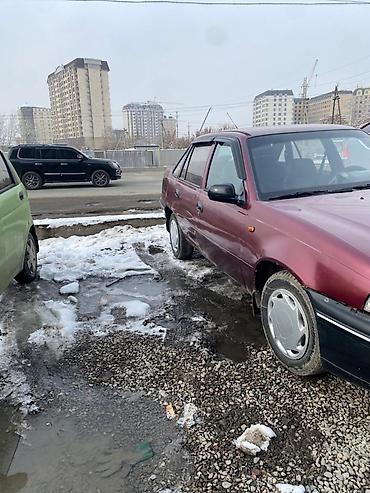 Daewoo Nexia, седан, бордовый с серыми бамперами.