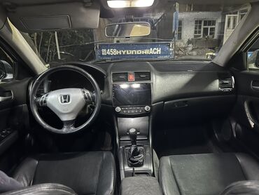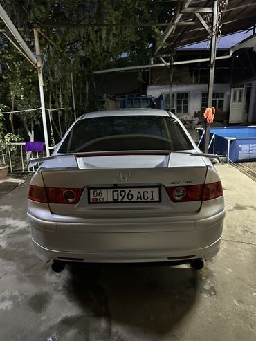 Серебристый седан Honda Accord, оснащенный спойлером и литыми дисками. Автомобиль имеет спортивный вид благодаря аэродинамическим элементам и низкопрофильным шинам. Салон выполнен в темных тонах, сиденья обтянуты черной кожей. В центральной консоли установлен современный мультимедийный экран. Задняя часть автомобиля оснащена двойной выхлопной системой, что подчеркивает его динамичность. Надежный вариант для повседневного использования и дальних поездок.