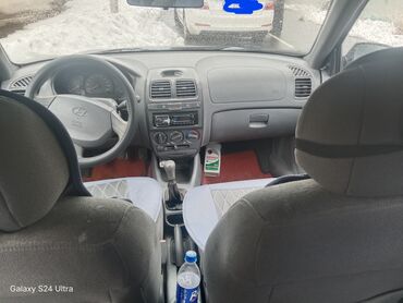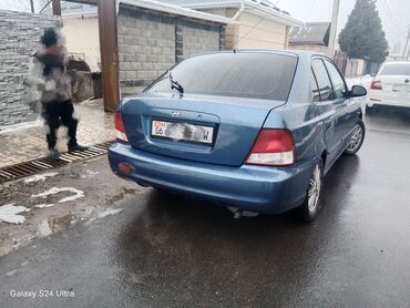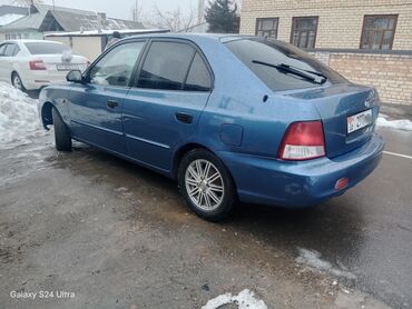Hyundai Accent седан, голубой цвет кузова. Основные характеристики: - Кузов: 4-дверный седан - Трансмиссия: автомат (селектор на центральном тоннеле) - Привод: передний - Двигатель: бензиновый - К...