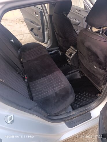 - Просторный 5‑местный салон с тёмной отделкой, тканевые чехлы на сиденьях.