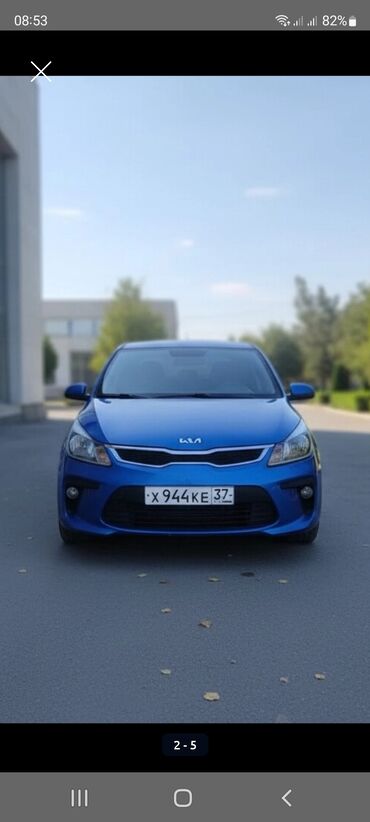 Синий седан Kia Rio (рестайлинг), номерной знак на фото.