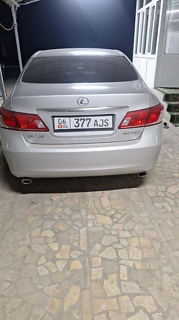 Надежный и комфортный автомобиль для города и трассы, с плавным ходом и тихой работой двигателя. Номерной знак KG 377 AJS. Цвет: серебристый. Маркировка модели на крышке багажника: ES 350.