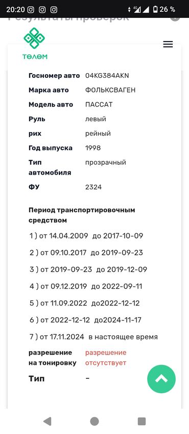Volkswagen Passat (B5), серебристый седан. Машина Аксыда Ошко келет жакында.