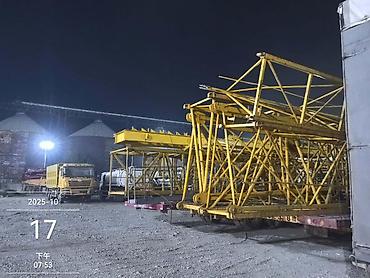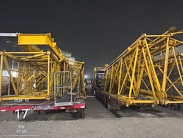 - Комплект металлических ферм и узлов для башенного крана: секции стрелы, мачты и соединительные вставки.