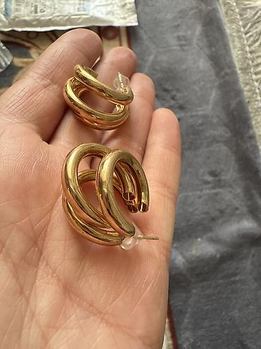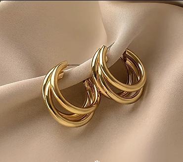 Серьги-кольца “Triple Hoop” золотистого цвета.