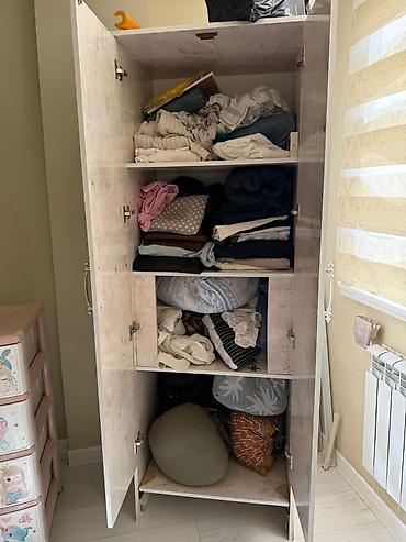 Шкаф с зеркалом 9000 сом. Шкаф с четырьмя створками и двумя выдвижными ящиками. Выполнен в светлом древесном оттенке с темными ручками, что придает ему стильный и современный вид. В наличии различн...