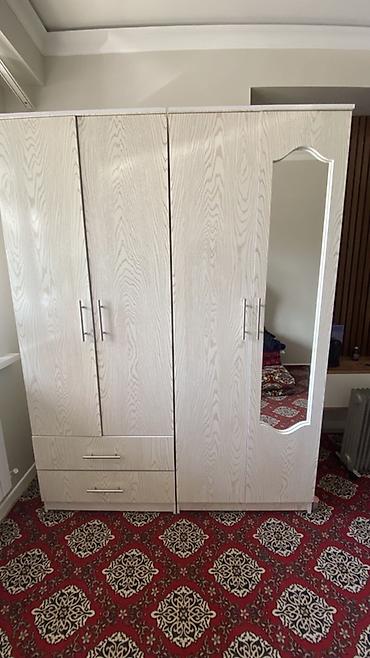 - Компоновка: три секции с распашными дверцами; одна дверца с фигурным зеркалом в полный рост.