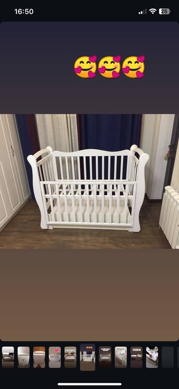 Продаём детскую кроватку в отличном состоянии. материал - дерево. в комплекте есть родной матрас. Борта опускаются и подгимаются. Есть функция укачивания. Цена: 10000 сомов.
