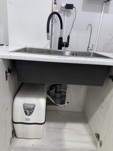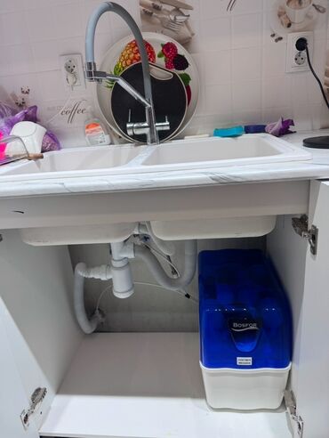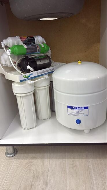 Система очистки питьевой воды с обратным осмосом (комплект под мойку) - Полный набор для домашней установки: блок предфильтров, осмотическая мембрана, постфильтр, накопительный бак, отдельный пить...