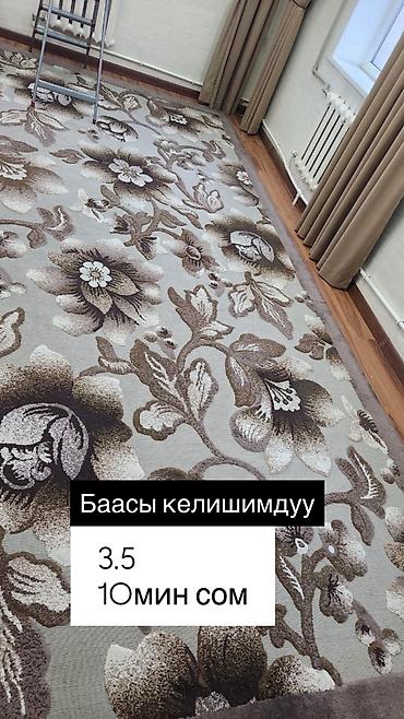 - Ковер светло‑серый с крупным цветочным орнаментом в коричнево‑бежевых оттенках. Мягкий ворс, прямоугольная форма. На фото указан размер 3,5 и цена: 10 мин сом.