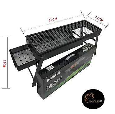 Портативный мангал-гриль BABALE Характеристики: - Тип: складной переносной мангал/барбекю на углях - Габариты в рабочем виде: 60 × 22 × 32 см - Габариты в сложенном виде: 60 × 22 × 6,5 см (компакт...