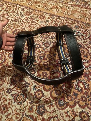 - Конструкция: широкие кожаные ремни с прошивкой и усиленными заклёпками; соединены двумя поперечными кожаными планками.