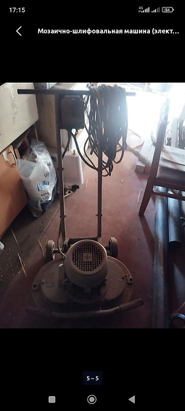 - Конструкция: напольная машина с электрическим приводом, рабочей платформой под абразивные камни/сегменты, транспортировочные колёса, П‑образная рукоять для управления.