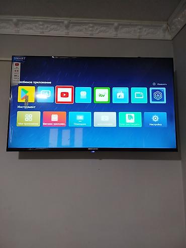 - Диагональ: примерно 43–50" (тонкие рамки, настенное крепление на фото).
