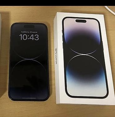 IPhone 14 Pro () — смартфон с дисплеем Super Retina XDR и вырезом Dynamic Island. Корпус темного цвета, комплектная фирменная коробка.