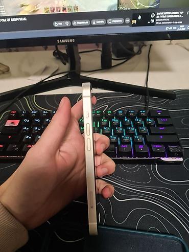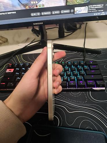 Смартфон Apple iPhone (серия с двумя диагонально расположенными камерами, светлый/«starlight» цвет).