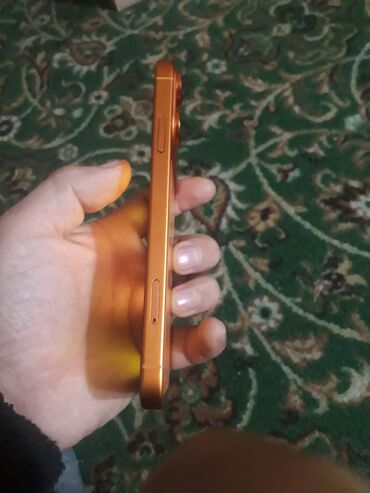 Смартфон Apple iPhone (модель с экраном с вырезом‑«челкой») в ярком оранжевом цвете корпуса.