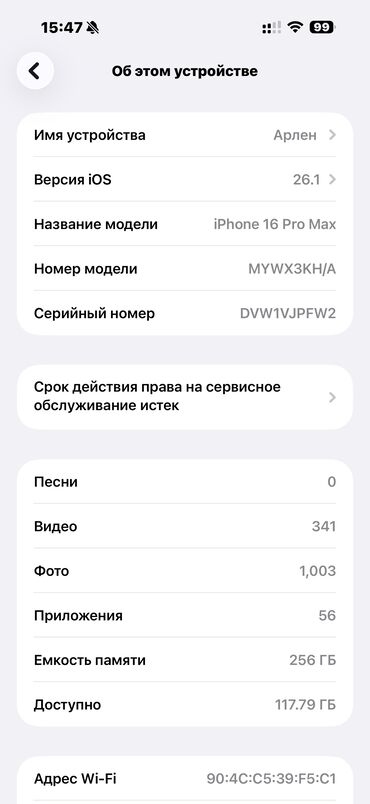 IPhone 16 Pro Max, Б/у, 256 ГБ, Зарядное устройство, Защитное стекло, Чехол, 98 %
