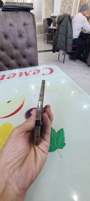 - Корпус с плоскими гранями из металла, задняя панель темная, логотип Apple.