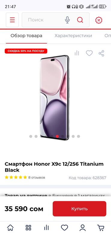 Honor X9c — стильный смартфон с изогнутым безрамочным дисплеем и тонкими гранями.