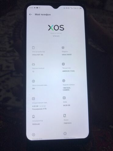 Infinix HOT 30i, Б/у, 64 ГБ, цвет - Голубой, 2 SIM