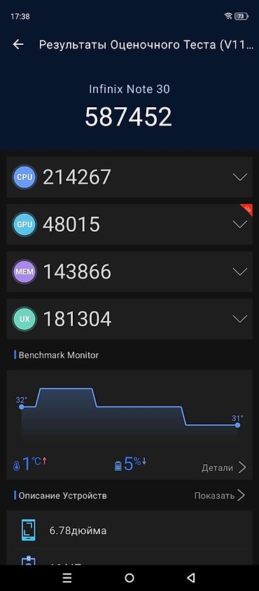 В комплекте: смартфон Infinix Note 30, родная зарядка.