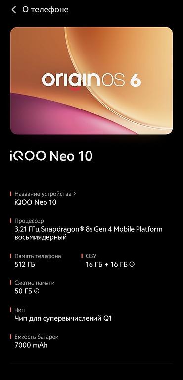 смартфон: IQOO neo 10 глобальная версия использовалась месяц комплект зарядка на 120 ват чехол коробка БЕЗ ТОРГА !!!!