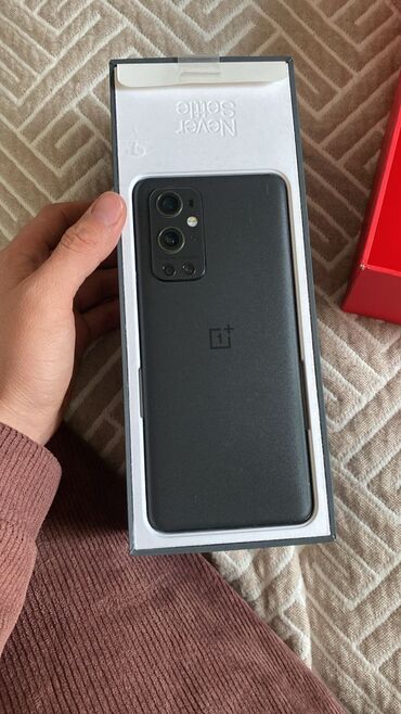 Смартфон OnePlus 9 Pro 5G в матовом черном цвете. Модель оснащена камерой, разработанной совместно с Hasselblad, что обеспечивает высокое качество снимков. В комплекте идет оригинальная упаковка, зарядное устройство с красным кабелем и два черных защитных чехла. Универсальное решение для повседневного использования, обеспечивающее быструю связь и качественную фотосъемку.