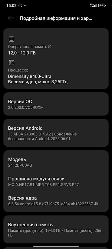 - ПО: Android 15, версия ОС 2.0.200.0.VOJRUXM; актуальное обновление безопасности Android от 2025-06-01.