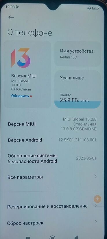 - ПО: Android 12, оболочка MIUI Global 13.0.8 (стабильная), доступно обновление.
