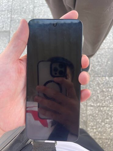 Смартфон Redmi, чёрный цвет, с плоским корпусом и глянцевой задней панелью.