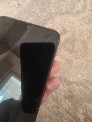 - Дисплей с вырезом под фронтальную камеру по центру верхней кромки; в правом верхнем углу экрана заметна трещина.