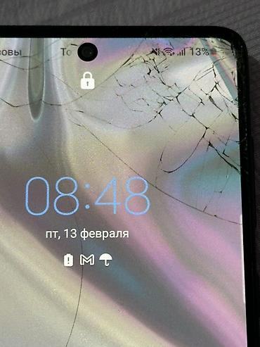 - На экране отображается заряд 13%, дата и время, уведомления о сообщениях.