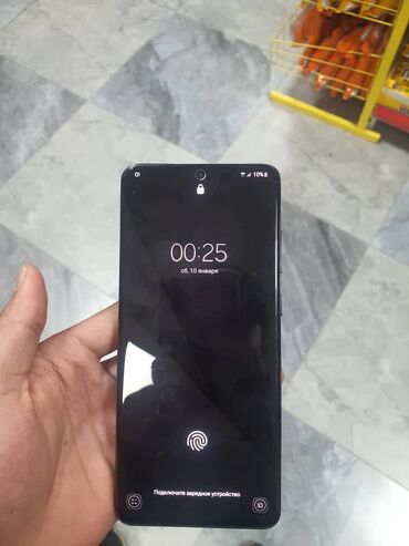 - Большой безрамочный дисплей с вырезом по центру под фронтальную камеру; сканер отпечатка пальца в экране.