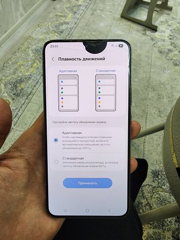 - Экран 6.1" Dynamic AMOLED 2X, частота обновления до 120 Гц (адаптивная), режим «Комфорт для глаз», поддержка светлой/тёмной темы.