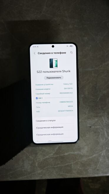 Смартфон Samsung Galaxy S22 (модель SM‑S901N), цвет зелёный.