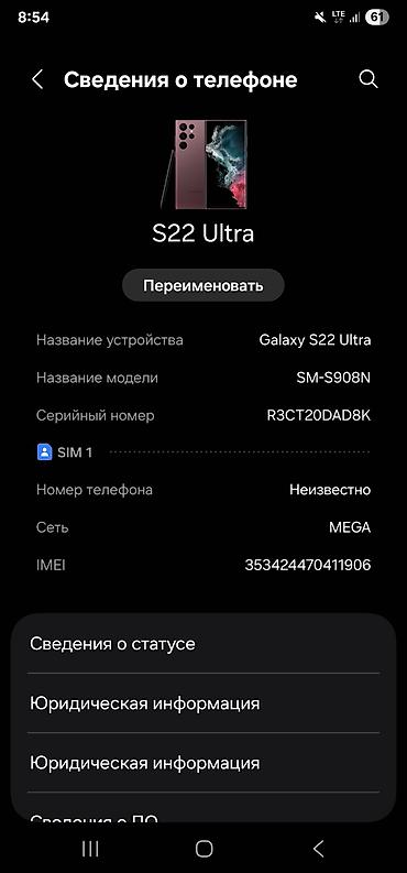 Смартфон Samsung Galaxy S22 Ultra 512г ОБМЕН НЕ ИНТЕРЕСУЕТ. с Корейсикй нет коробки и зарядного устройства кмодельным номером SM-S908N. Устройство оснащено мощным аккумулятором емкостью 5000 мАч (стандартно) и 4855 мАч (номинально), что обеспечивает длительное время работы. Объем встроенной памяти составляет 512 ГБ, а оперативной памяти — 12 ГБ, предоставляя достаточно места для приложений, файлов и быструю многозадачность. Поддерживает работу с одной SIM-картой и использует сеть MEGA. Идеально подходит для повседневного использования, работы и развлечений.
