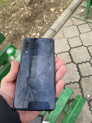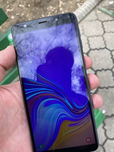 Смартфон Samsung Galaxy 7A(серия J/A, 2018–2019) в синем корпусе.
