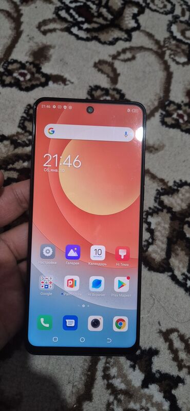 - Операционная система: Android с оболочкой HiOS (видны иконки Hi Browser, Hi Theme), установлен Google Play Маркет
